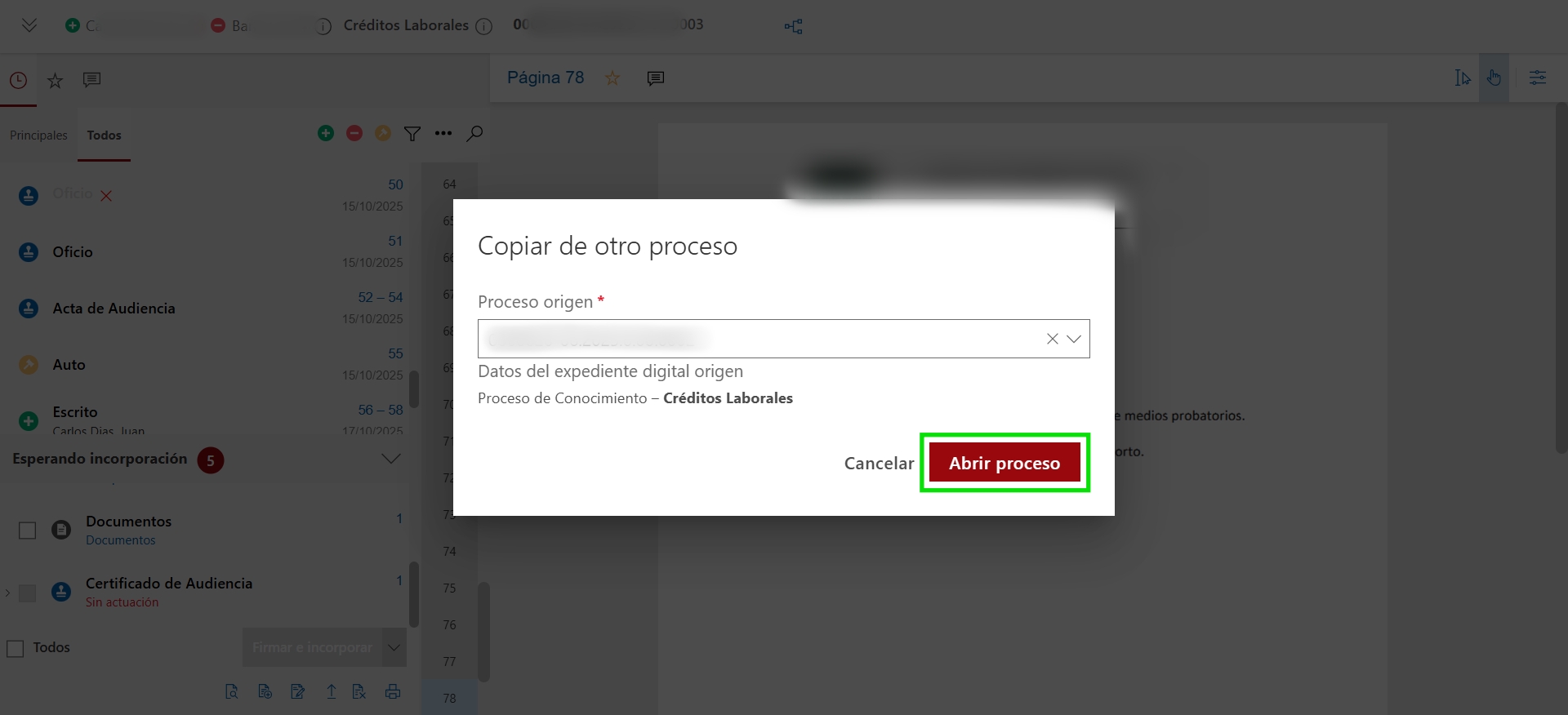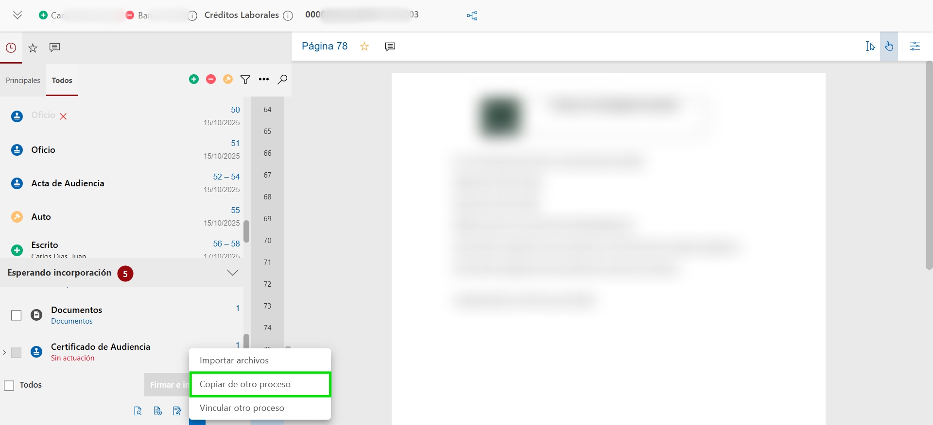 Otra forma de importar documentos al Expediente Digital es copiando documentos de otros expedientes.