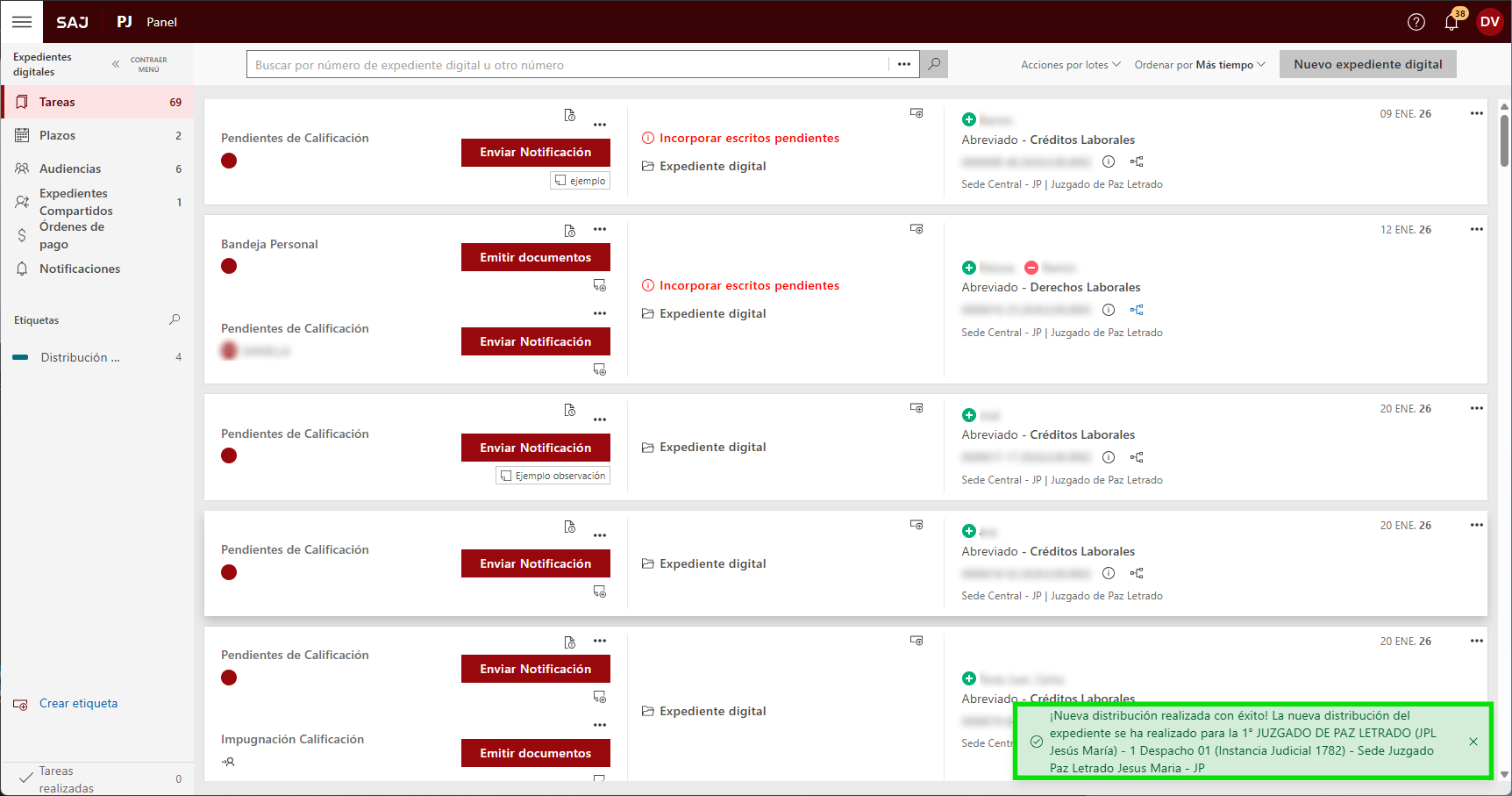 La función Distribución se utiliza para asignar los expedientes a los juzgados, tribunales o salas correspondientes.